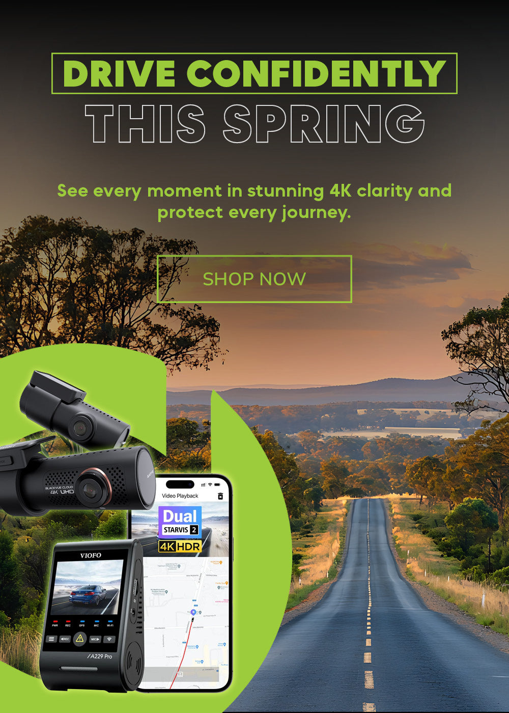 Capture every drive in Ultra-HD 4K with SONY™ STARVIS sensors and HDR, delivering crystal-clear video from both front and rear cameras in any light. Equipped with Wi-Fi, GPS, and parking mode, it provides complete protection for your vehicle.